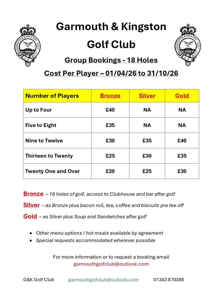 We are open all year for groups to come and enjoy our course and all that Garmouth and Kingston Golf Club has to offer.